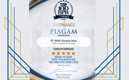 Pada acara TheFinance @Hotel Ambarukmo Yogya 21 Juni 2024. BPR Akasia Mas berhasil meraih piagam penghargaan sebagai BPR berpredikat “1 (satu) Bintang” kategori Top 100 BPR beraset Rp.100 Milyar keatas yang tumbuh pesat selama 3 tahun berturut–turut.